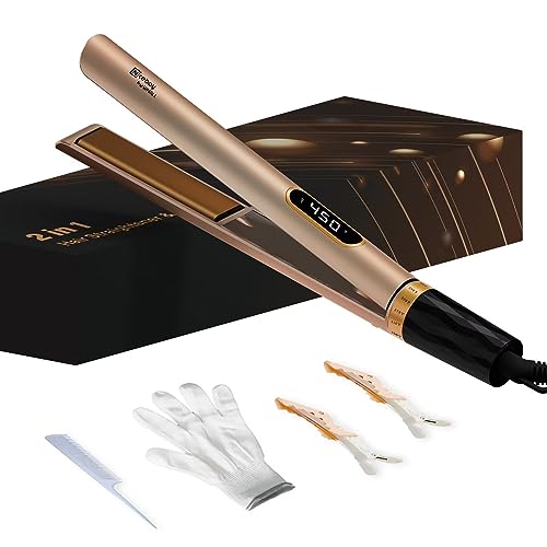 Nicebay Hair Straightener Flat Iron,Hair Straightener and Curler 2 in 1,Hair Straightener Iron with 5 Temp,Titanium Flat Iron for Fast Heating, Negative Ion Hair Care, Wide Voltage for Travel