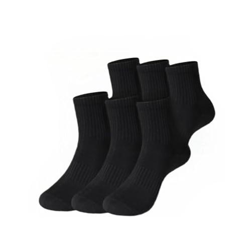 MEETREE 6-pairs Men's Mini Crew Socks, Black Cotton Quarter