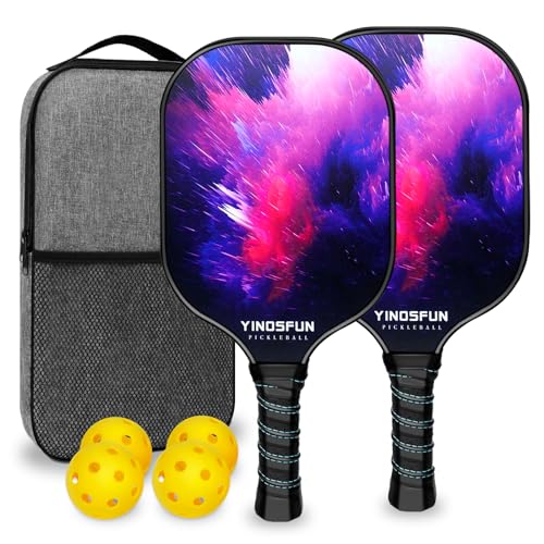 Pickleball Paddles, Fiberglass Surface Pickleball Set, USAPA Approved 2 Pickleball Rackets, 4 Pickleball Balls, Lightweight Pickleball Paddle for Men Women and Beginners