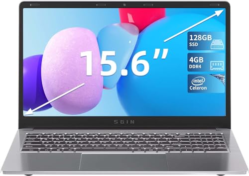 SGIN Laptop 4GB DDR4 128GB SSD, 15.6 Inch, Celeron CPU Ultrabook Laptops Computer with 2xUSB 3.0, Mini HDMI, Bluetooth 4.2, Dual Band WiFi, 5000MAH