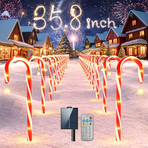 35.8”Solar Christmas Candy Cane Lights,Waterproof Outdoor Decorations Lights with 8 Working Modes,Decorate Yard Garden Paths and Christmas Trees,12pcs