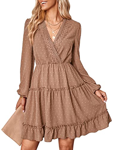 BIPASION Swiss Dot Dress for Women V Neck Long Sleeve, Flowy