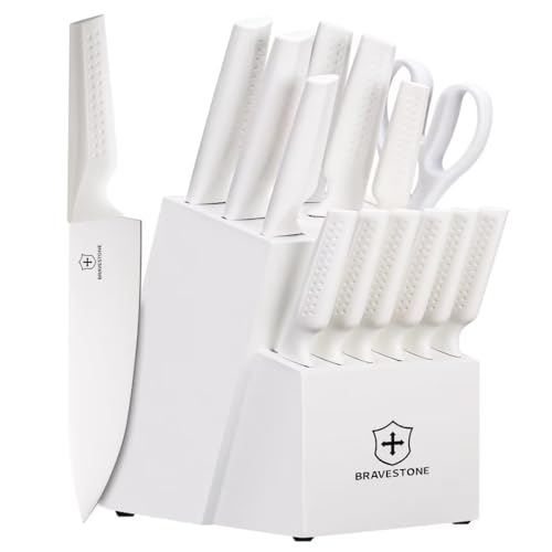 BRAVESTONE Knife Sets for Kitchen with Block, 15 Pcs Kitchen Knife Set with Block Self Sharpening, Dishwasher Safe, Anti-slip handle