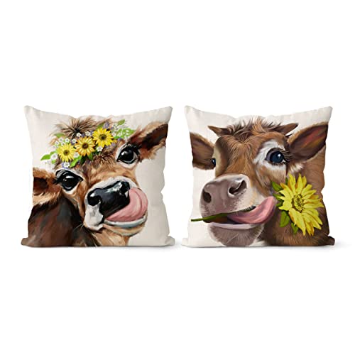 ERYOGS Cow Farmhouse Pillow Covers 18x18 Set of 2 Fall Brown