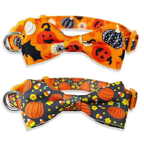 Halloween Dog Collar with Bow Tie, 2 Pack Holiday Pumpkin Gh