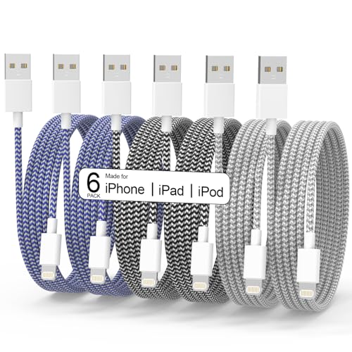 iPhone Charger[Apple MFi Certified] 6Pack(3/3/6/6/6/10FT) Lightning Cable Fast Charging Cord Nylon Braided Compatible iPhone 14/13/12/11 Pro Max/XS MAX/XR/XS/X/8/7 Plus