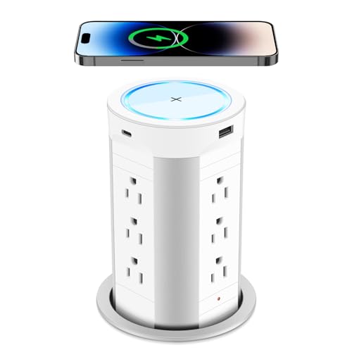 Pop Up Outlet for Countertop Kitchen,45W USB C Counter Charging Station,12 Outlets & 4 USB Ports & 15W Wireless Charger,3.9"Hole Desktop Power Grommet, Island Pop Up Electrical Outlets, Power Supply