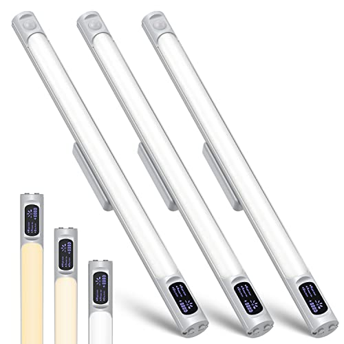 Under Cabinet Lights,64 LED Motion Sensor Light Indoor, Closet Lights with 2200mAh Large Battery,14in Rechargeable Magnetic Under Counter Lights for Kitchen,Battery Level Display(3 Color Temps)