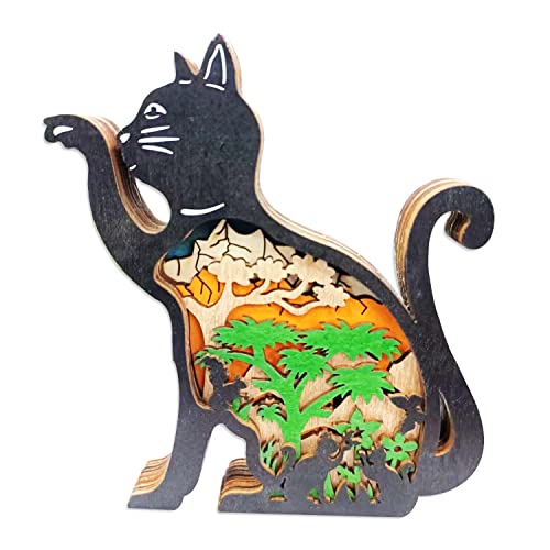 VESMATITY Cat Wooden Animal Statue Decor, Cat 3D Cute Design