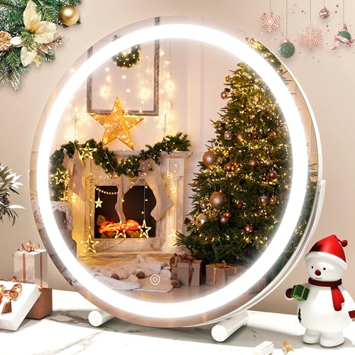 Vierose Large Vanity Mirror with Lights - 22"X18" LED Makeup Mirror, Light up Mirror for Desk, Bedroom Tabletop, Smart Touch Control Dimmable & 3 Color Modes, 360° Rotation, Gift for Women (White)